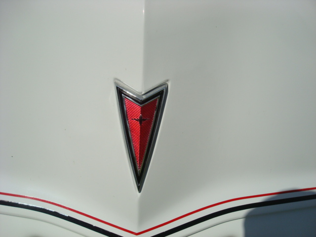 I saw a Merc emblem, a Pontiac emblem and part of a 56 Caddy emblem with one proud lady on top.