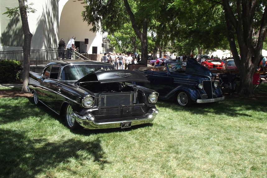 It is good to have hosts with fine automobiles. How about a 59 Caddy survivor. Dennis Kleysteuber brought his 57 Chevy and Larry Smith showed up with one fine 36 Ford. Check out that SHADE at 100° it was sure welcome.