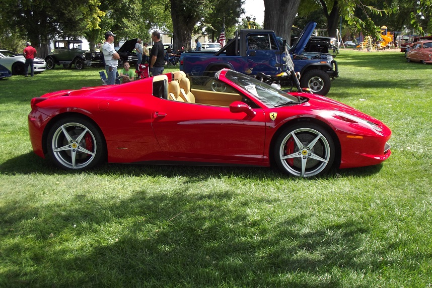 A red Ferrari (I had to look up the spelling). Now that is not something you expect to see in a Western kansas City Park!