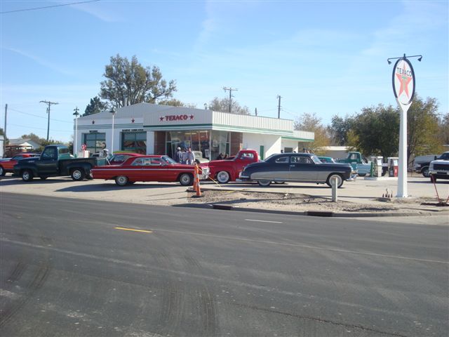 THE LAKE SCOTT CAR CLUB HAD IT'S FALL CRUISE LATE THIS YEAR, BUT LUCKED OUT ON THE WEATHER. THE EVENT WAS HELD WITH A BRISKET DINNER COOKED BY TONY SIECK (MOVE OVER MARTHA) AT MARK BURNETT'S TEXACO STATION ON 96 HIGHWAY SCOTT CITY, KANSAS.